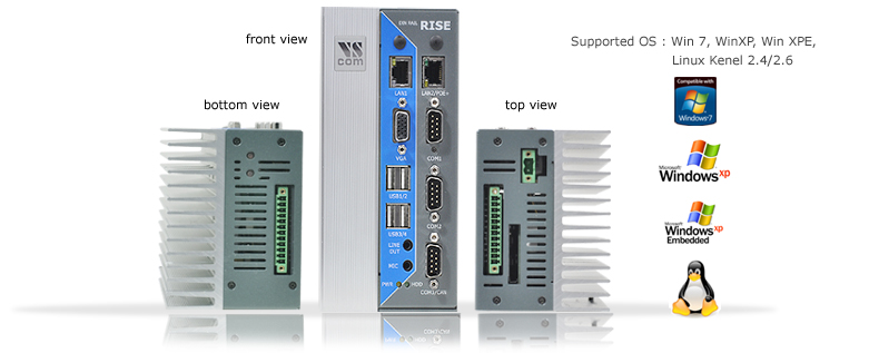 RISE family offers a rich set of both standard interfaces, such as LANs, USB, VGA, RS232/422/485 ports,