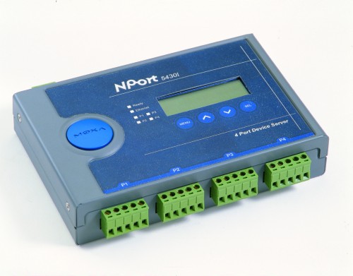 NPort Server 5430 is an industrial-strength network-based serial device server for connecting up to four RS422/485 devices like CNCs, PLCs, weighing scales, scanners and other devices directly to the 10/100Mbps Ethernet network running TCP/IP. Through the revolutionary built-in human interface with Liquid Crystal Module (LCM) for display data/status and buttons for inputting data or selecting mode, you can easily set up the server, such as IP address, net mask and gateway, and monitor the server status and data transmission. Eliminate the need to prepare additional PCs during installation. In addition to allowing serial devices to get networked, any host (PC Server or Workstation) without network access can also access remote serial device via adding NPort Server Lite to the existing serial port. In other word, a pair of 1-port NPort Server can be configured over Ethernet and serve as a transparent serial channel without platform and distance limitation.