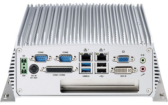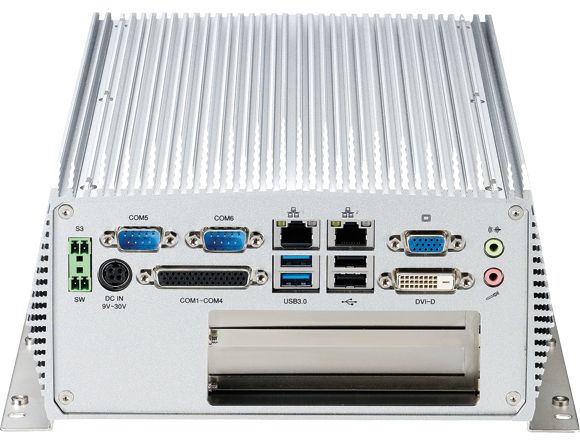 The connectivity includes 2x Intel® GbE LAN ports, 6x COM ports, and 1x (front accessible) CFast socket; the GbE LAN ports support WoL function. Fast serial interfaces like 4x USB 3.0 and 2x USB 2.0 plus 1x or 2x PCI or PCIe slots facilitate the flexible expansion of system's capabilities. One Integrated Mini-PCIe slot can accommodate WLAN or 3G/4G-Modem cards. 9-30V DC input power supply, wide temperature operating range and ruggedized compact aluminium housing recommend it for deploying in harsh industrial environments.