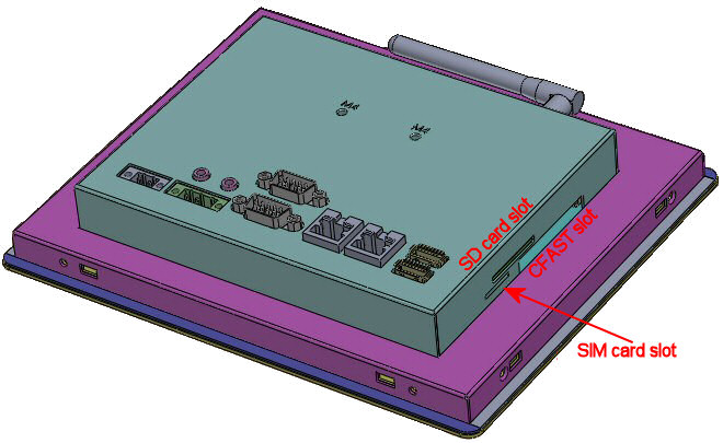 The system allows extension with broadband GSM/3G/4G-Modems for installation on mobile internet bases. WLAN802.11b/g/n (joined with Bluetooth) is available as a common option; furthermore, two locations for SMA-antenna sockets are provided. The great variety of interfaces like LAN, USB, RS232/422/485 serial ports and CAN-Bus enable VS-860 to act like a powerful gateway between networks and various industrial devices and field buses. At the same time the display allows for HMI operation.