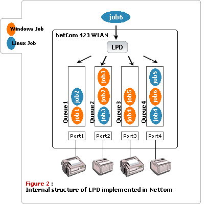Each printer is identified by the name of the queue, where it is attached to. The NetCom